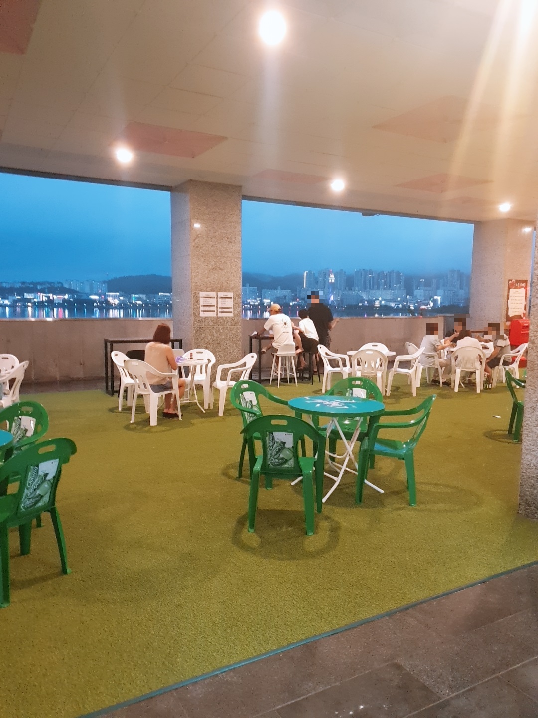 속초 씨크루즈 호텔만의 한가지 즐길수 있는 것이 바로 3층 테라스이다. 요즘 같이 코로나가 유행인 시기에 휴가를 즐기기란 쉽지 않다. 물론 내가 조사한 맛집을 찾아가면 당연스럽게도 사람들이 엄청 붐비는 것을 볼 수 있다. 그래서 우리는 먹고 싶은 음식을 포장해서 3층 테라스에서 먹었다. 3층 테라스에도 사람이 없는 것은 아니지만 테이블간 거리도 넓고 아름다운 바다뷰를 보면서 음식&맥주를 즐길 수 있다.